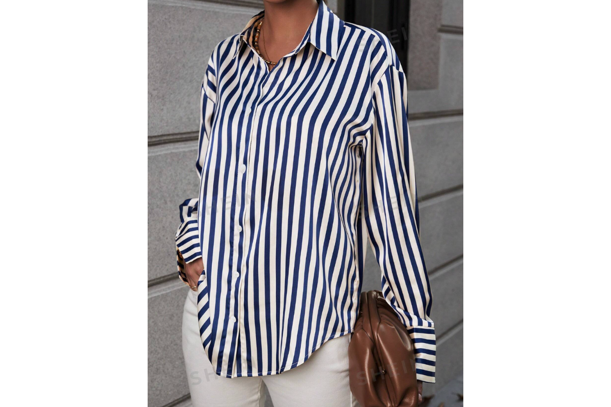 Uma peça coringa que você precisa ter é a camisa listrada. Sem dúvidas a opção cria um visual casual clássico, além de ser super versátil. Aqui, a peça se destaca pelo design despojado com mangas longas e ombros caídos.