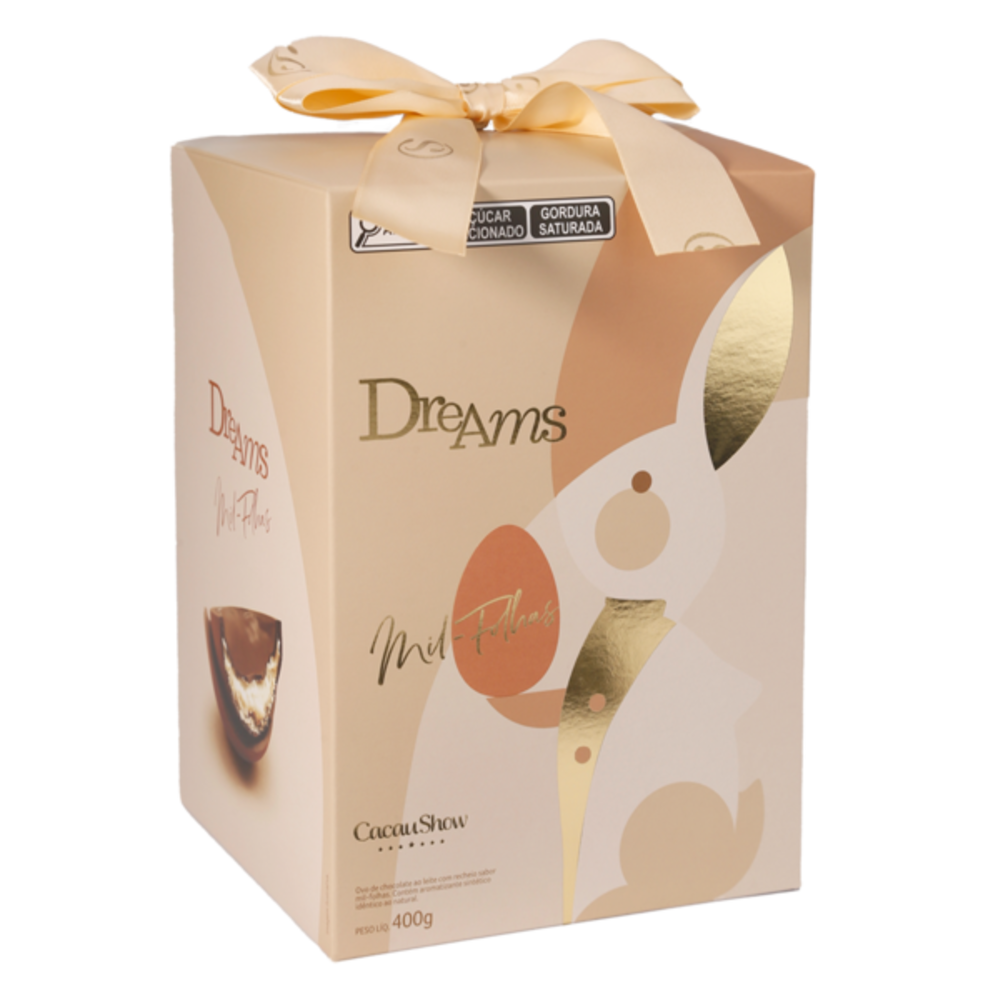 O primeiro da série “Dreams” é o Ovo de Páscoa Dreams Mil-Folhas Avelã. Com 400g, oferece uma casca de chocolate ao leite que esconde uma textura que lembra o wafer e um recheio que mescla o sabor característico do mil-folhas à singularidade da avelã. Custa R$93.99.