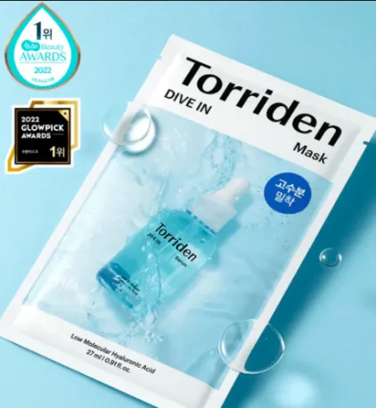 A Torriden Dive in Mask é uma máscara facial que proporciona hidratação profunda graças ao seu composto de ácido hialurônico de baixo peso molecular.