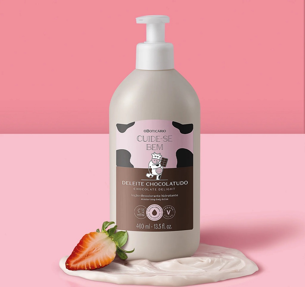 Inspirado no chocolate, esse hidratante da linha “vaquinha” do Boticário tem uma fragrância oriental gourmand e textura bem cremosa.