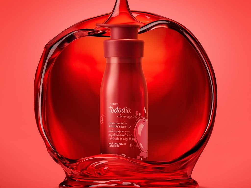 Essa edição especial da Natura traz uma fragrância que remete a maçã do amor, combinando notas frutais com um toque de baunilha.