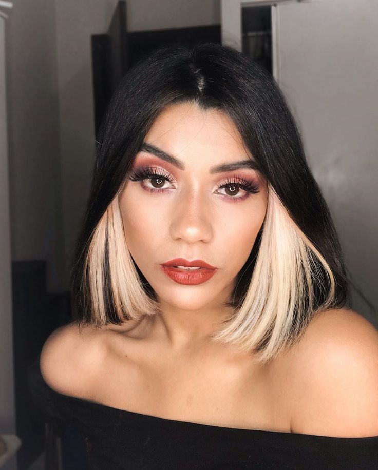 Celebridades e jovens fashionistas amam essa variação, que dá modernidade e ousadia ao visual. Para conseguir o look, o interessante é ter uma base de cabelo bem escura, e acrescentar mechas o mais claro possíveis.