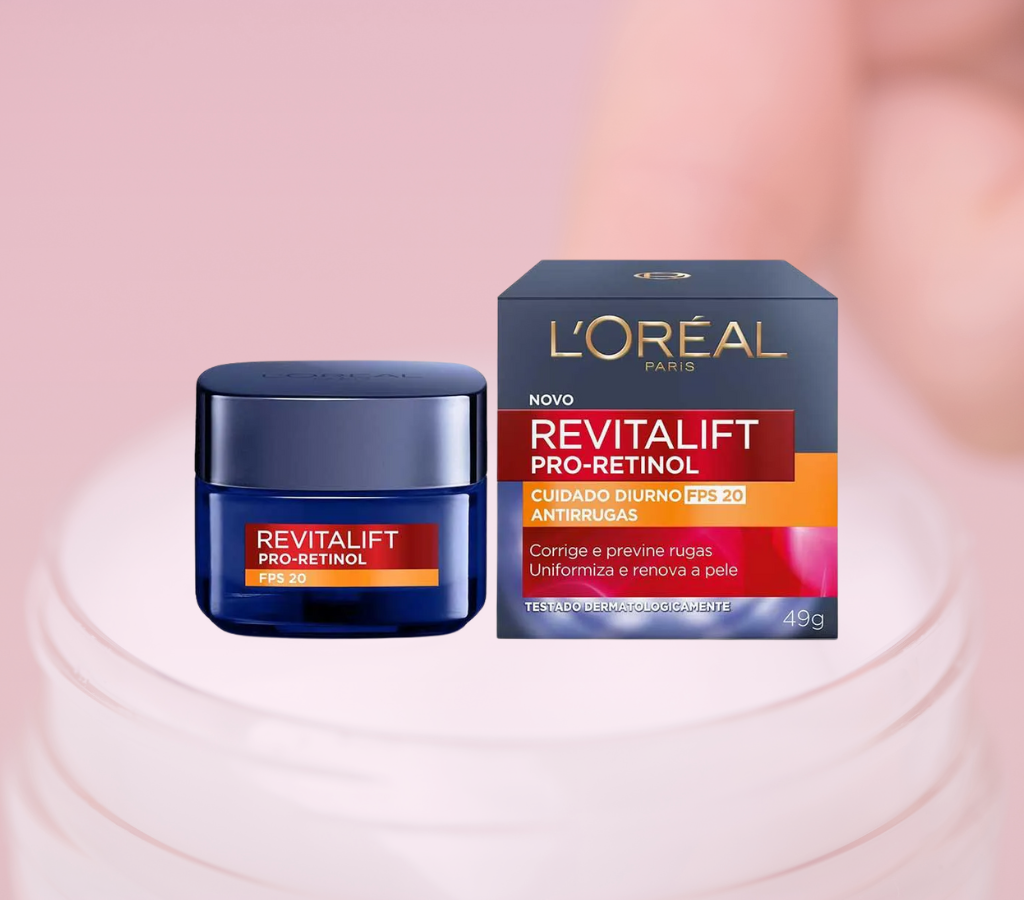 Fechando nossa lista de hidratantes faciais para pele madura encontrados em farmácias, o Revitalift Pro Retinol é uma boa escolha para quem busca combater os sinais de envelhecimento durante o dia.