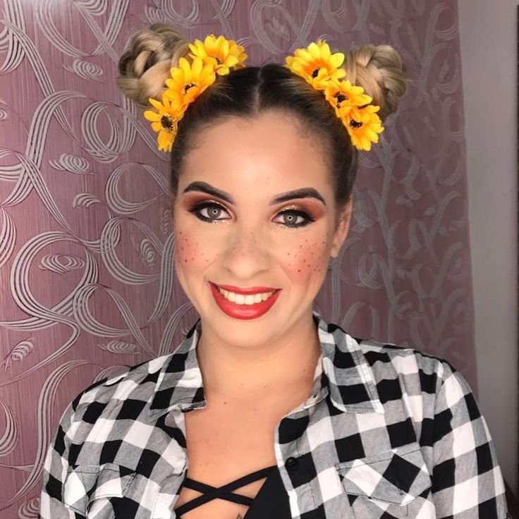 Este penteado junta os dois penteados mais tradicionais de Festas Juninas, criando um look mais divertido e brincalhão.