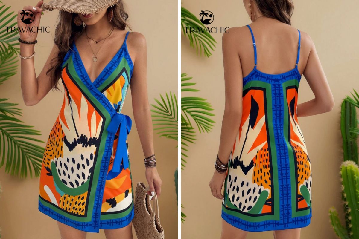 CAJUNI Vestido Longo de Slip Casual de Férias com Estampa Tropical Boêmia – R$ 53,06