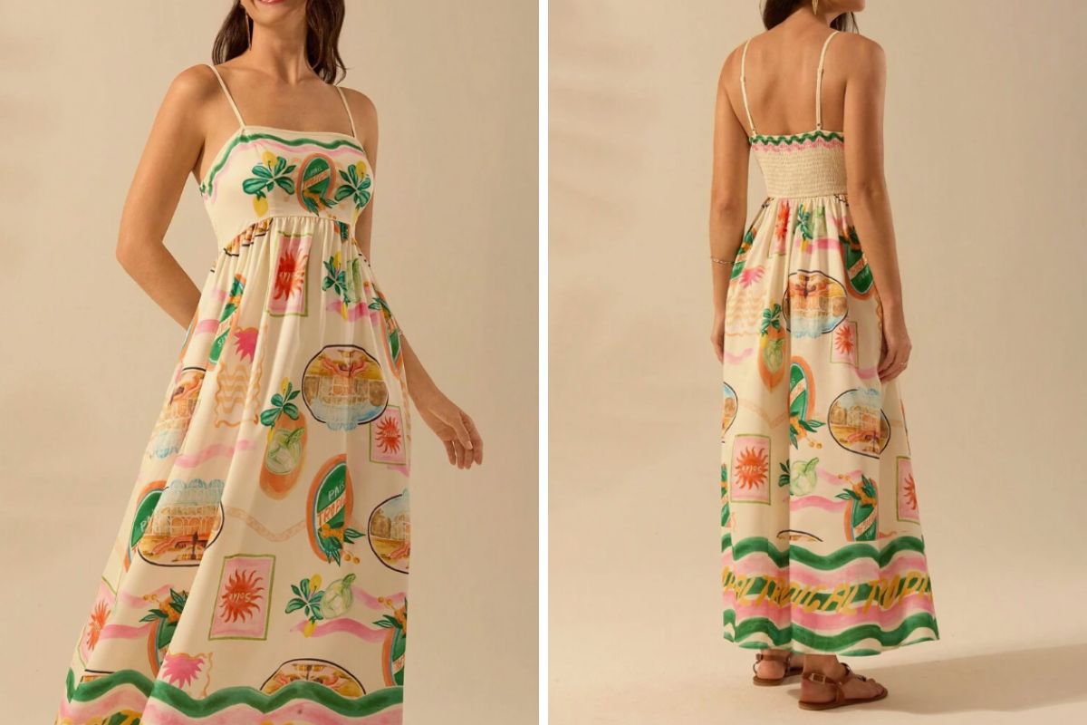 Seguindo na linha estampados, este vestido da Shein está no Top 10 mais vendidos da plataforma, e chama atenção pela sua estampa sofisticada e comprimento mais longo.