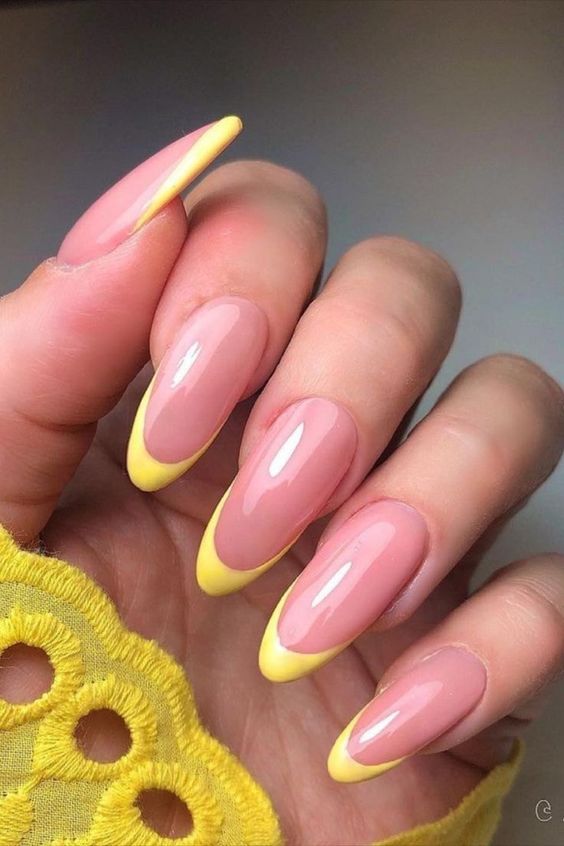 Essa opção é ideal para quem quer adotar a tendência das unhas amarelas, mas prefere uma decoração mais discreta.